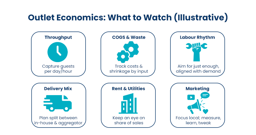Once the doors are open, small dials decide the story. Throughput at peak. Recipe yield and waste. Covers per staff hour. The delivery-versus-dine-in mix. Rent and utilities as a share of net sales. Local reach and repeat density. None of this is complicated; all of it determines whether month three feels steady or uphill. We teach teams to read these dials every morning, make one or two changes, and read them again the next morning. That rhythm, not slogans, builds momentum.