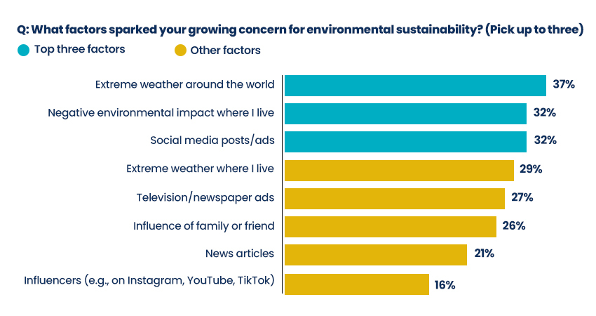 • Leveraging behavioural triggers: People act when they feel a personal connection. Hence, position your product around the emotional response to environmental challenges like pollution or climate anxiety, which can motivate immediate action.